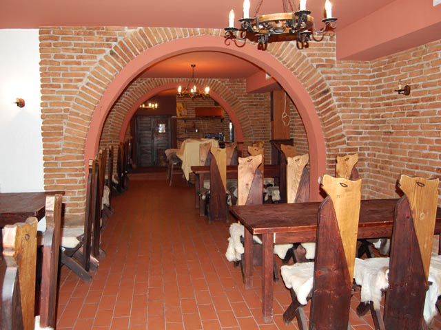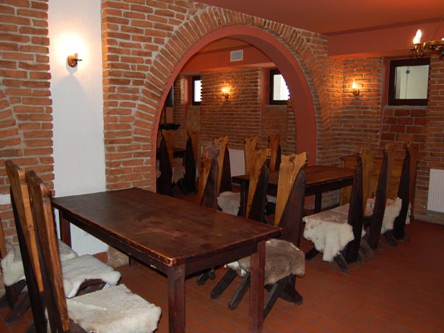 Prin prezenta sa impunatoare si eleganta, crama noastra este locul ideal pentru cele mai importante evenimente ale dvs. Aceasta dispune de peste 100 de locuri in salon sau in separeuri, instalatie de aer conditionat precum si o servire ireprosabila. Aici poti savura delicioasele mancaruri traditionale taranesti si pastorale incepand de la traditionala mamaliga cu branza si smantana si pana la cele mai sofisticate preparate. Tuica, vinul de casa sau cele mai fine bauturi fac deliciul unei mese savuroase intregite de atmosfera muzicii populare. Intr-un cadru intim si linistit, crama noastra va invita sa gustati cele mai savuroase preparate ale bucatariei romanesti, pregatite dupa retete traditionale. |